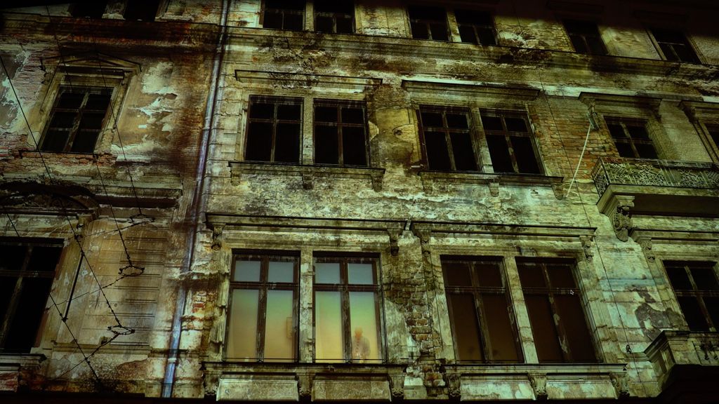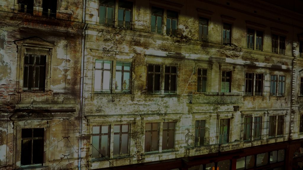 Stefan Hoenerloh - analog façade photography Leipzig and East-Berlin 1989, used as the basis for the projected digital collage