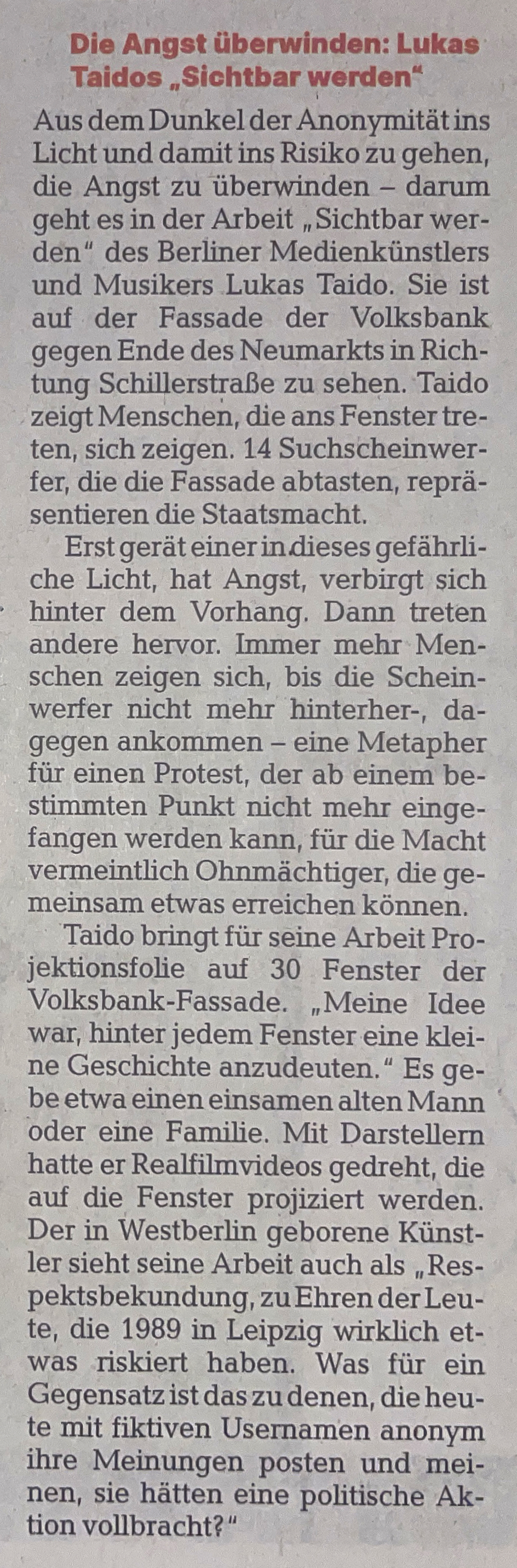 Project "Sichtbar Werden" ("Becoming Visible")__Audiovisual and lightchoreographic installation__Neumarkt, Leipzig, Germany 2025